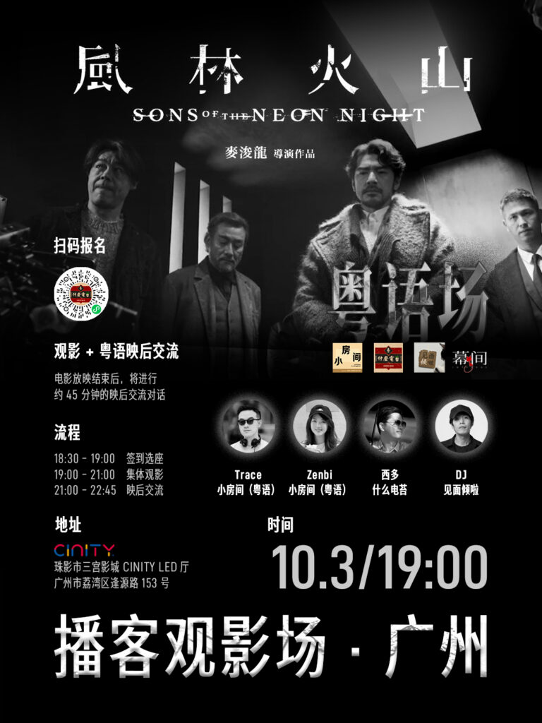 今年十一档,我们将在广州和「小房间(粤语版)」,「见面倾啦」以及幕间观影团一起举办《风林火山》观影场,欢迎大家来~