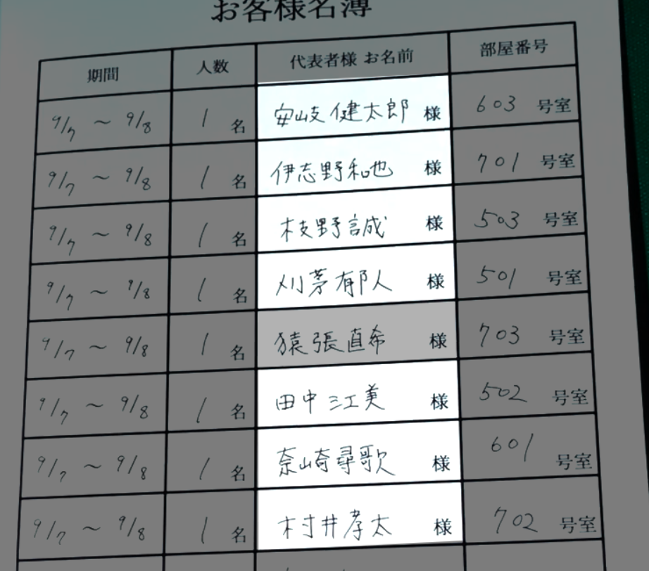 57:55 八名住客确定为神秘团体客,夜光纸确定是由体客一起向死者展示