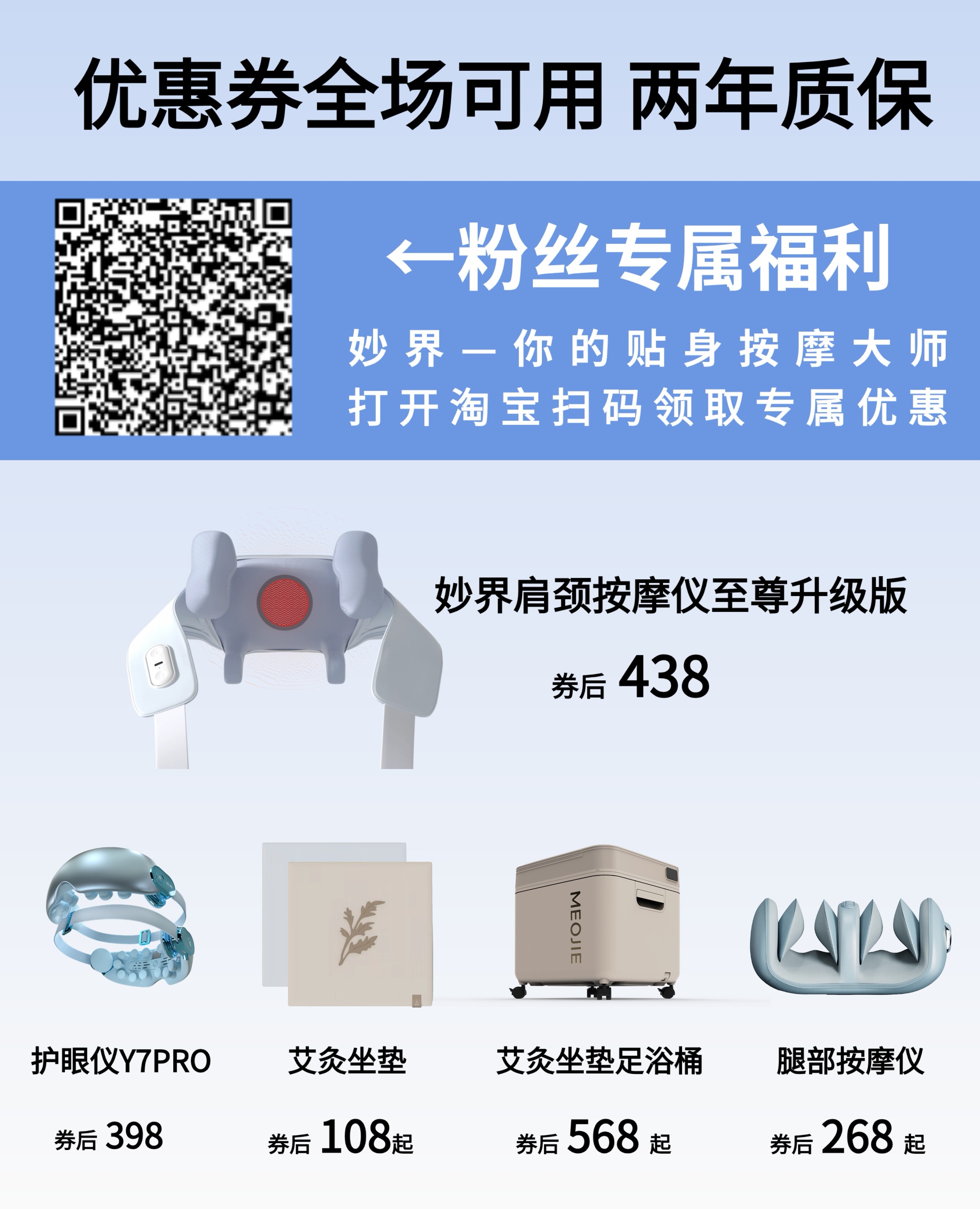 出现肩颈问题大家一定不能轻视,如果不及时推开僵硬酸痛的肌肉,长期以往,很容易演变成肩周颈椎类疾病,严重的还会头晕手麻。所以改善肩颈健康,刻不容缓!妙界这款操作也非常简单,家里有老人也可以轻松使用,拿来自用或者送给长辈亲朋,都是不二之选!领取专属优惠还能额外叠加平台优惠,到手比店内大促价格还划算很多!