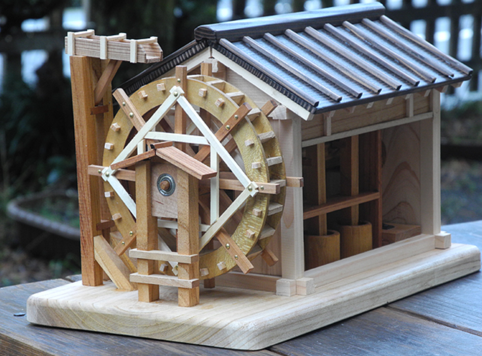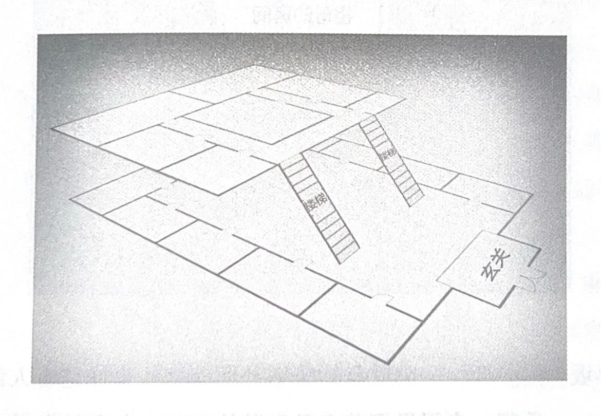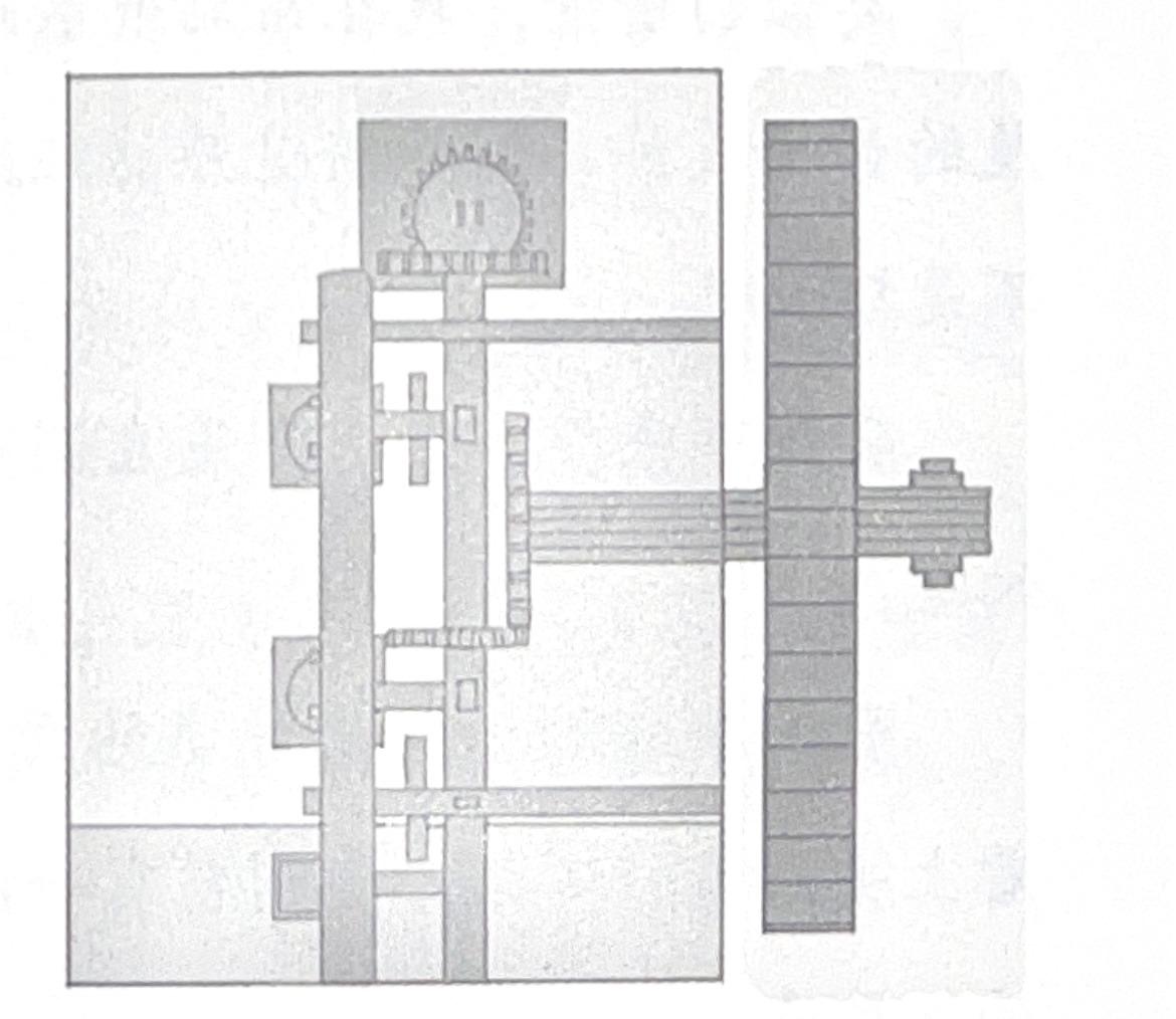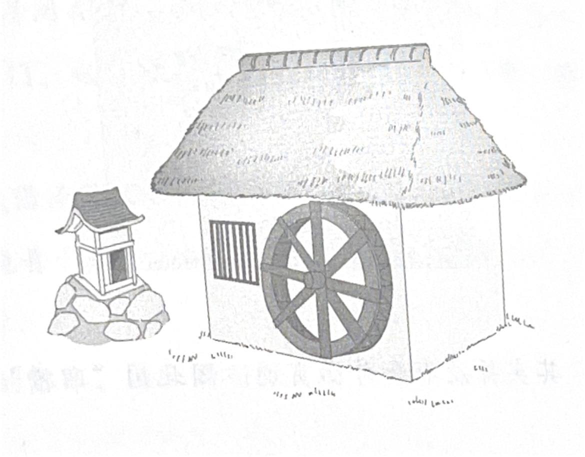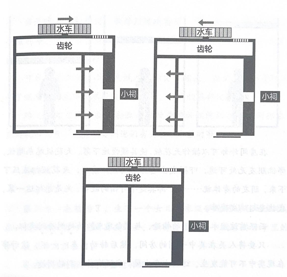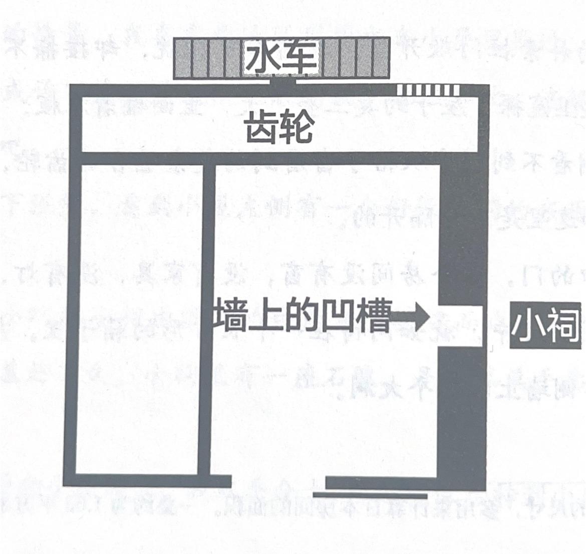 图:水轮被推动后,屋门的中间出现了一堵墙的横面