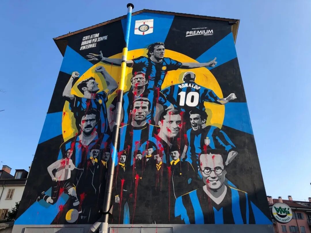 被AC米兰球迷破坏的国米INTERWALL涂鸦