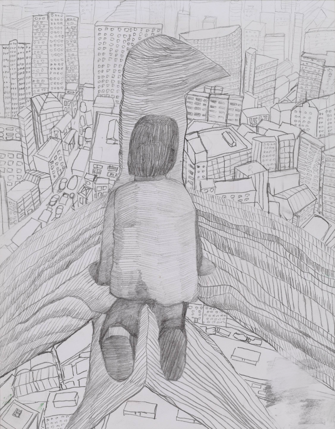■图 / 小爽的画作,幻想自己可以坐着千纸鹤,在这个城市上空飞。