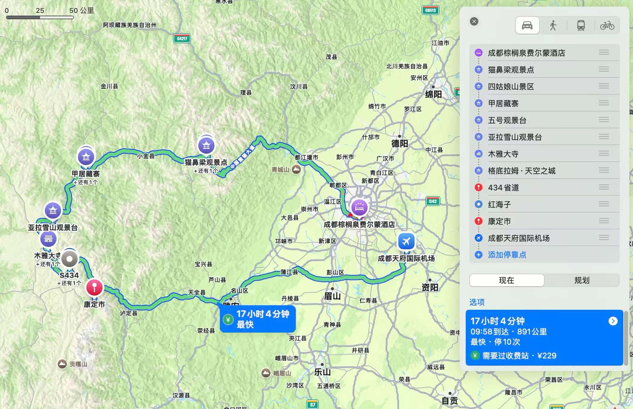 21:49 新都桥到成都自驾路线及沿途景点推荐