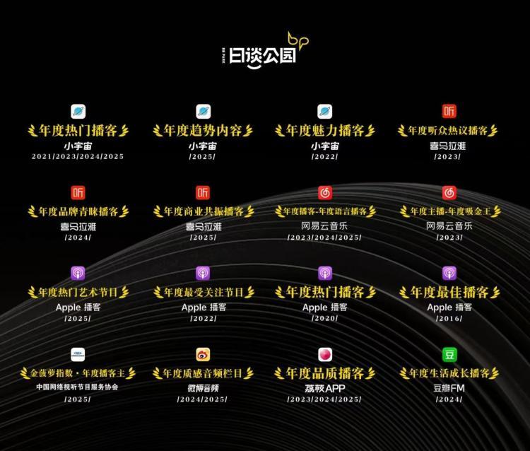 日谈公园,曾获小宇宙年度热门播客、喜马拉雅品牌青睐播客、Apple播客年度最佳播客、网易云音乐年度语言播客、荔枝APP年度品质播客等多项殊荣,并发起“日光派对”播客MCN,提供播客经济相关服务。