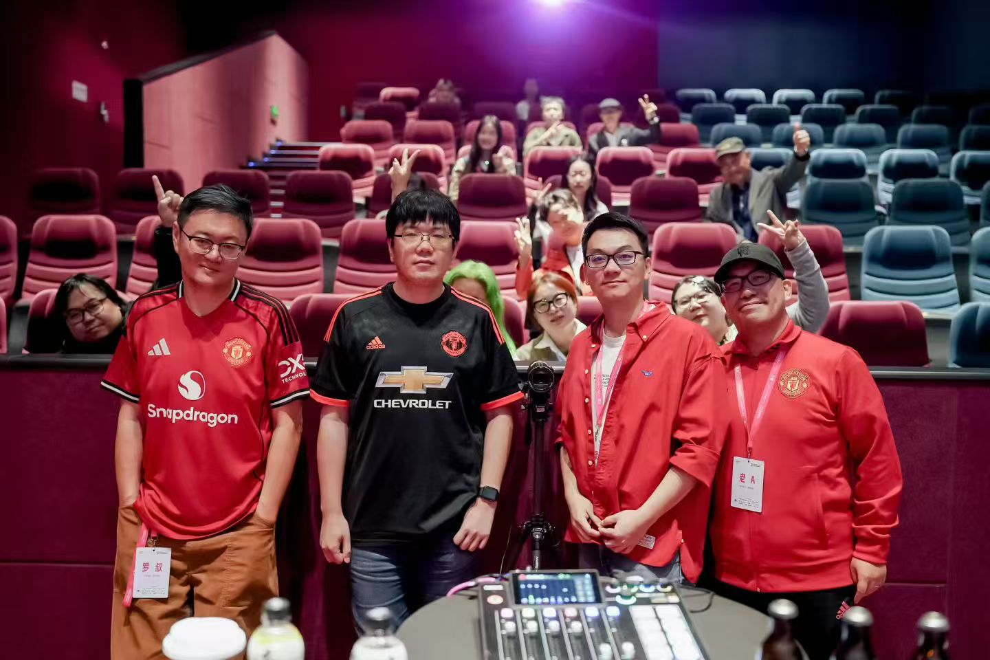 这期录制现场,三个人居然没有提前打招呼,就默契的穿了曼联秋衣,只是混进了一名热刺的探子,好歹套了件红衫:)